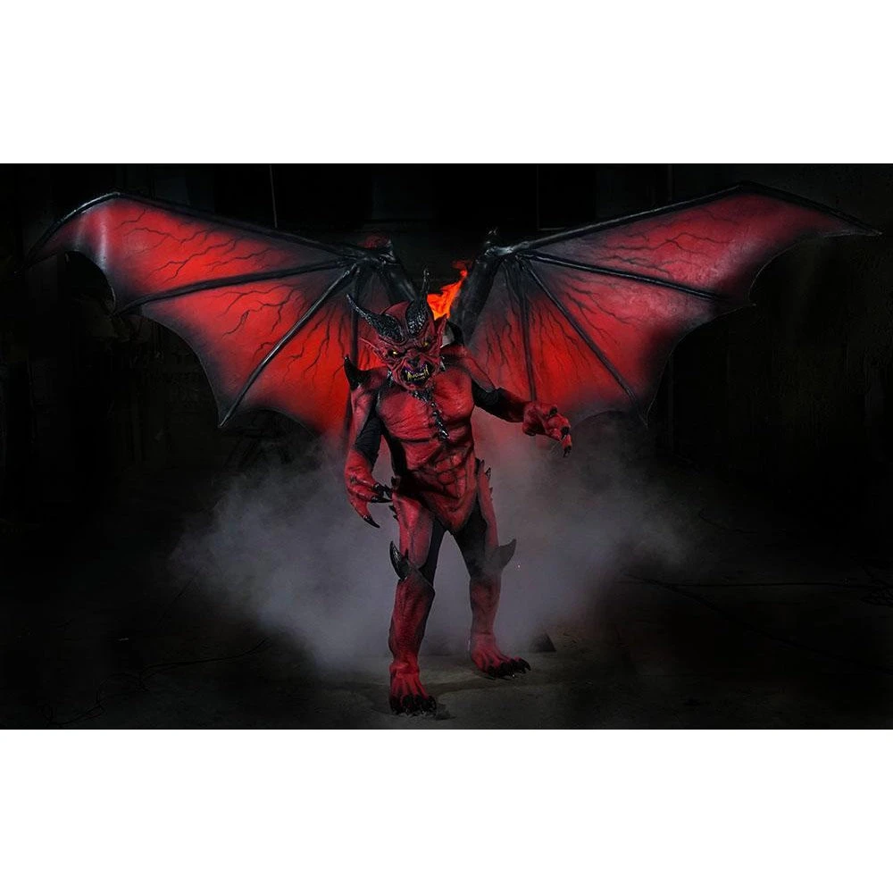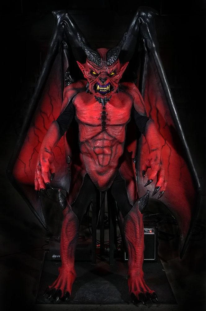 Demon Shock is part of our popular Distortions Shocktronic line. A great piece for a haunted attraction, Halloween event, or theme park, and is sure to give you guests plenty of scares! What first appears to be an animatronic demon quickly comes alive as an actor in costume jumps out at the unsuspecting victims! Watch our Shocktronic scare videos to see for yourself how effective this Shocktronics is! This shocktronic is effective, fun, durable and expertly made. Demon wing span aprox. 12ft. across. Comes with fog, light, sound, controls and demon costume.