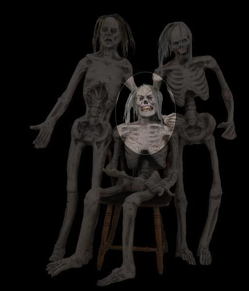 Flat back economy corpse. Made of latex and foam this corpse prop also has a bendable wire armature in the arms and legs so that it can be posed. Perfect corpse for Haunted attractions, home haunts, retailers, and Halloween parties. Pictured sitting in the middle.