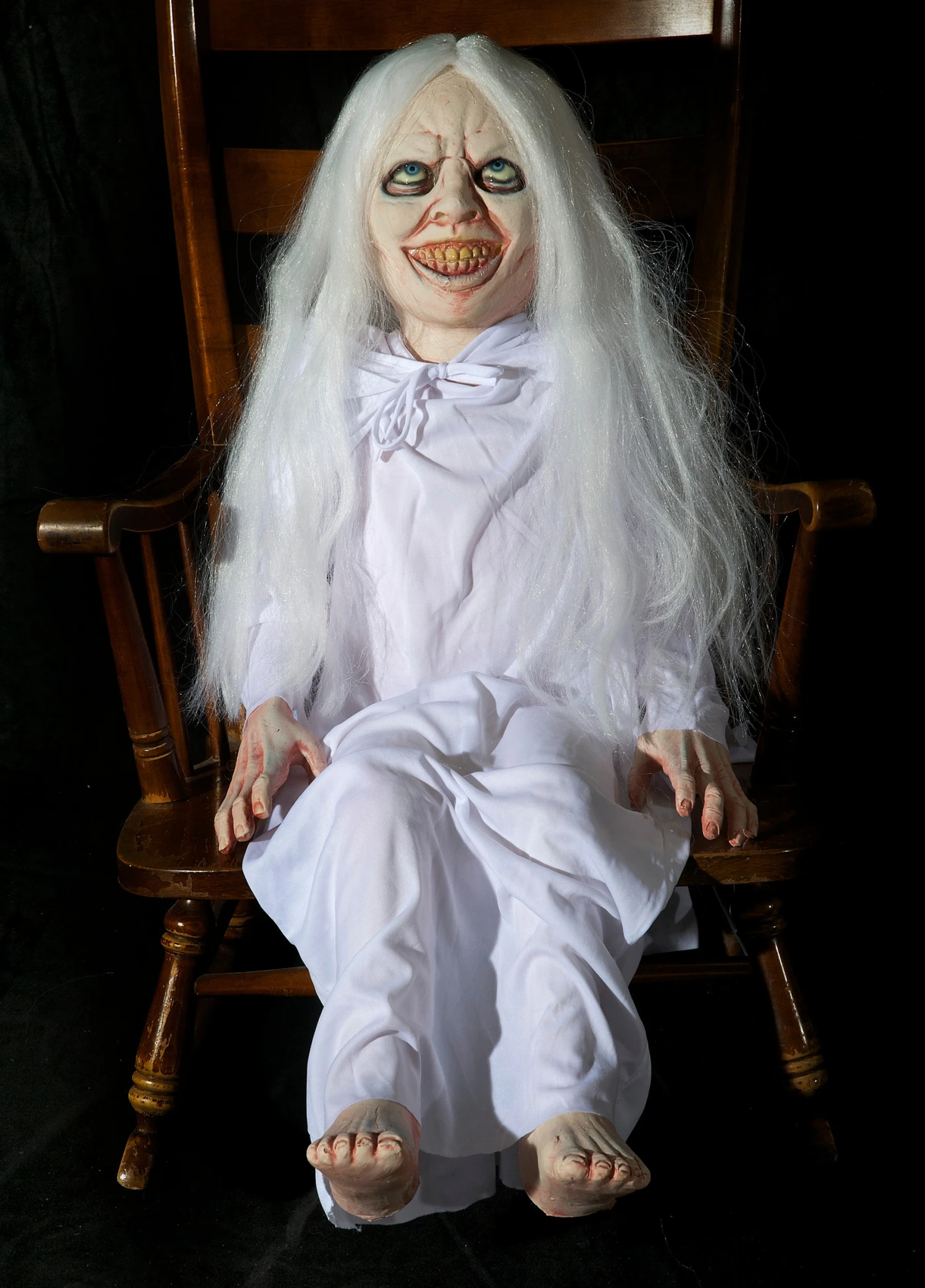 All Electric Ghost girl animatronic Halloween prop. This creepy ghost makes a perfect decoration for a home haunt, Halloween decor or spooky scene. Includes link to download Frightronic audio track.