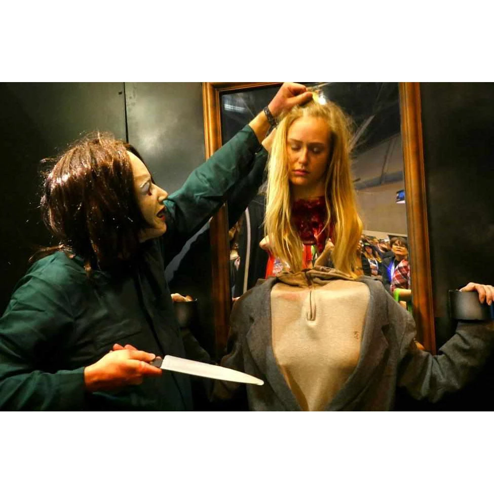Shocking beheading illusion! This is an incredibly effective illusion that is often used in haunted houses, Halloween attractions, and horror events. Please watched the videos below for a description on how this severed head scare works.