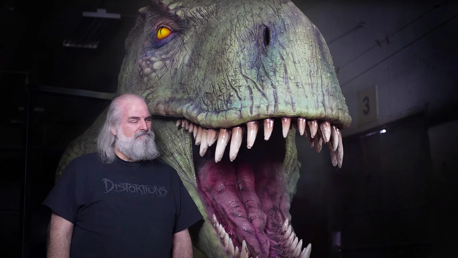 Distortions Unlimited TREX Dinosaur animatronic theme park prop at the Transworld Halloween & Attractions Show