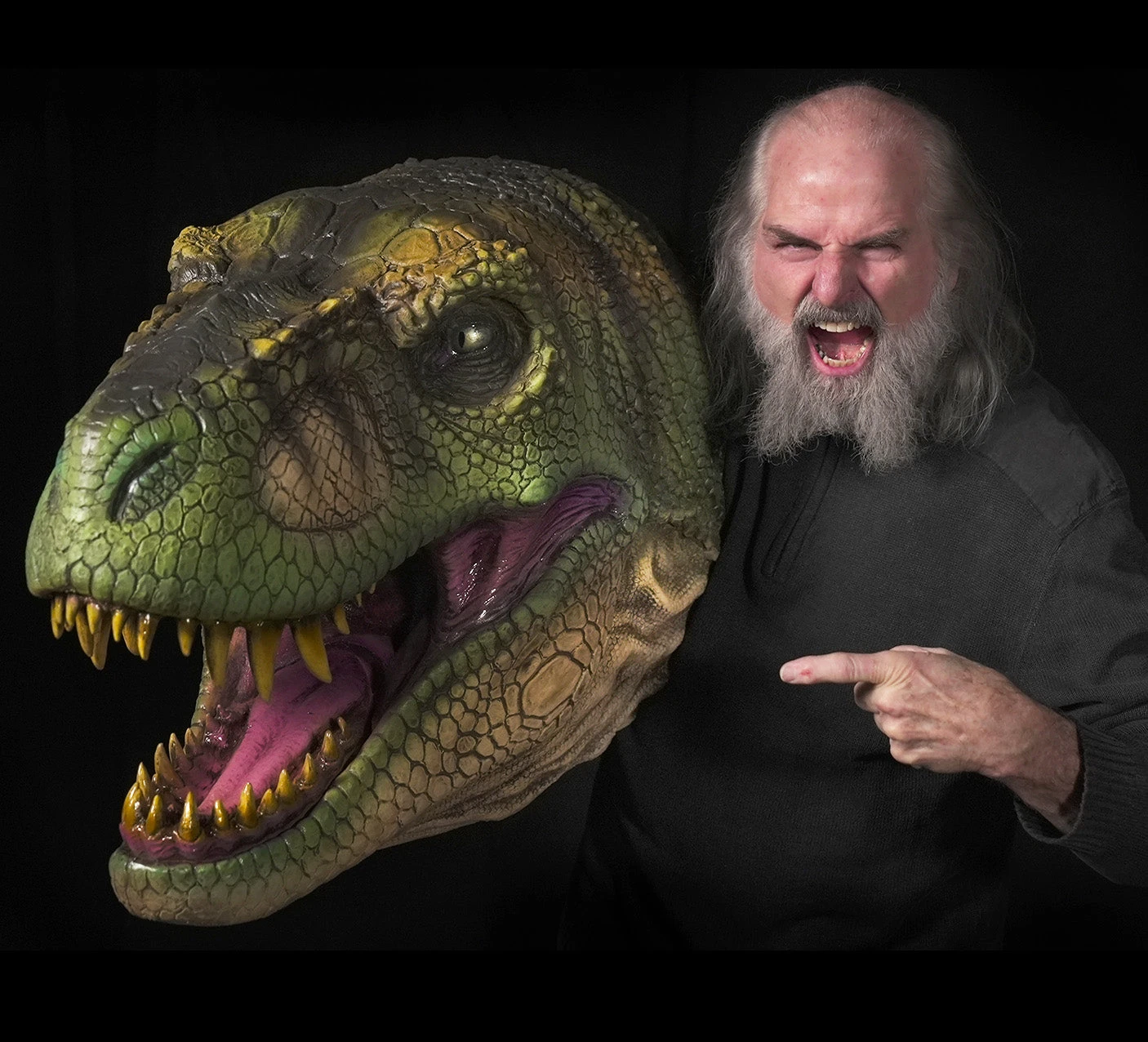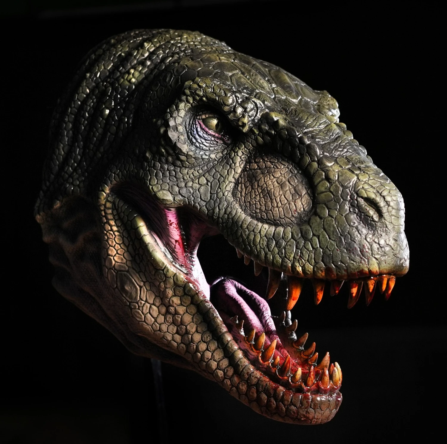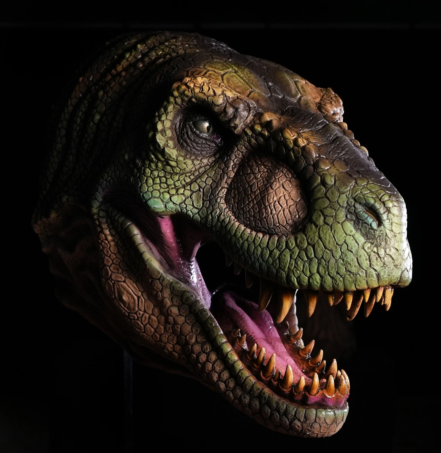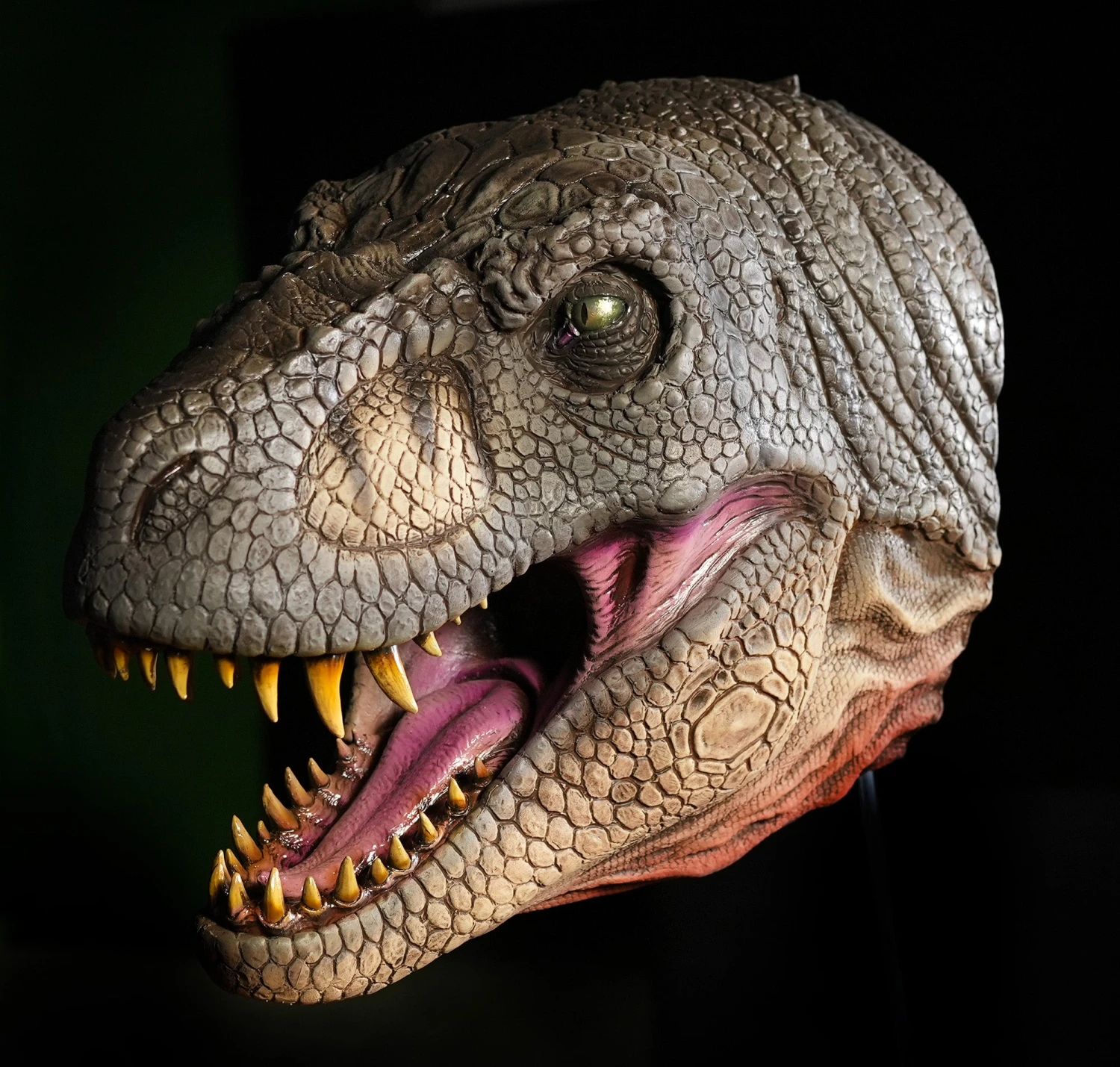 Our T-Rex Head Prop was sculpted at Distortions Unlimited by Tom Cassidy and is hand-crafted and painted at the Distortions studio. This high-quality piece of dinosaur art will be something you can take pride in for years.